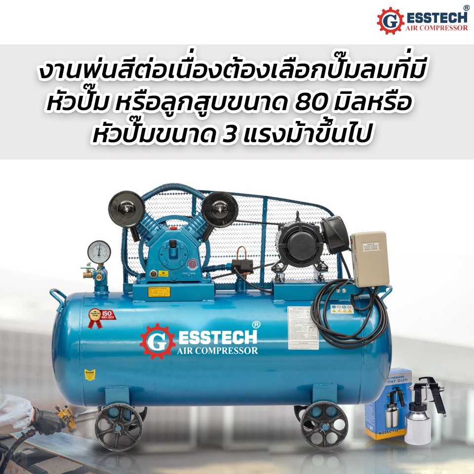 • งานพ่นสีต่อเนื่องนานๆ ลูกค้าต้องเลือกปั๊มลมที่มีหัวปั๊มหรือลูกสูบขนาด 80 มิล หรือ หัวปั๊มขนาด 3 แรงม้า ขึ้นไป เพราะอัตราการผลิตลมและแรงดันที่สูงจะมาจากแรงม้าของหัวปั๊มลมไม่ใช่จากแรงม้าของมอเตอร์