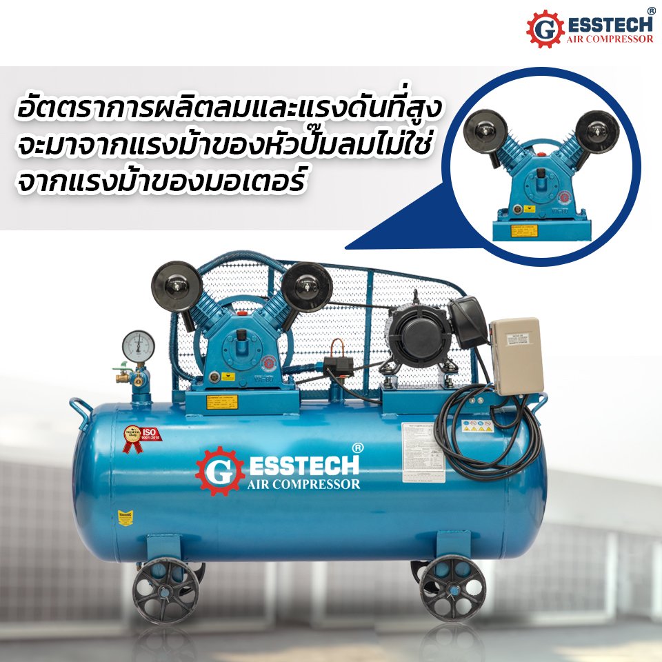 • ถังลมขนาดใหญ่ไม่ได้บอกถึงแรงดันของปั๊มว่าจะมีแรงดันที่สูง เพราะบางรุ่นอาจจะมีขนาดถังลมใหญ่แต่หัวปั๊มเป็นหัวปั๊มขนาดเล็ก